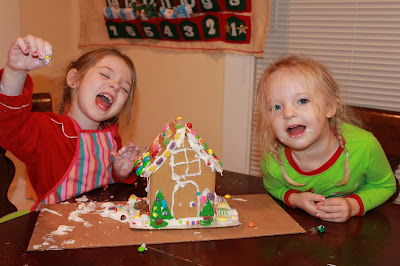 A week earlier, the girls decorated Gingerbread Houses for the first time ever! It was so much fun! Piper kept eating all the candy off faster than we could put it on, and it was making us laugh pretty hard. They are so much fun!