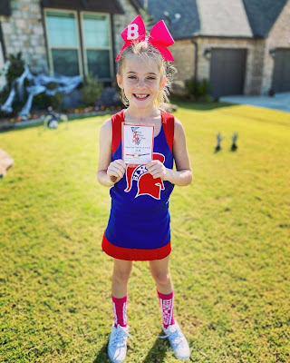 In other news, we’ve had some visitors come and watch Piper cheer! Her current teacher, Mrs. Poston, came to support her and she was soooo excited to see her in the stands! The next week, Mrs. Sumler (and her family) came to watch Piper cheer and their reunion made my eyes waterπ. Piper RAN into her arms! We haven’t seen her since Spring and it’s been hard so getting to hug her meant the world to all of us!