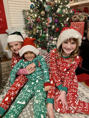 The kids were so well behaved on Christmas Eve because happiness correlates with the anticipation for Santa. In fact, they were so excited for Santa to come that they wanted to go to bed early, and then they actually forgot to leave out milk, cookies, and carrots for the reindeer! About 45 minutes after they had all gone to bed I realized they had forgotten so Shawn and I did it for them. And I knew (because I know my children) that if I didn’t go up and tell them it was taken care of, they’d come down in the night to tell me the bad news and they’d see all their gifts! So I went up to where they were all sleeping (a big slumber party in Sully’s room!) to let them know. And sure enough, Lucy was still awake and immediately said “Mommy! We forgot to leave out cookies and I can’t sleep because it’s all I can think about!” Haha, like mother like daughter....
